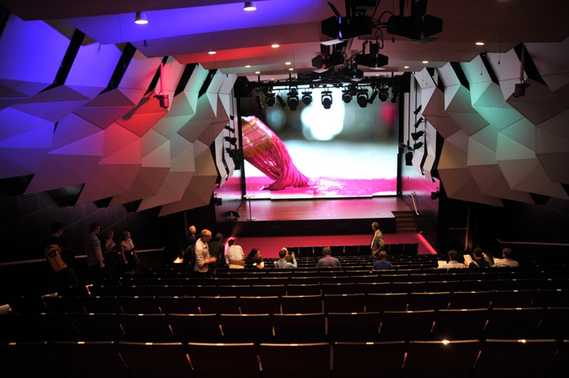 Deux projecteurs Roadster HD20K-J ont été utilisés pour la projection principale en mode soft edge et deux projecteurs Roadster HD12K-J ont été utilisés pour les projections latérales. Ces projecteurs 3DLP®compacts et puissants produisent des images très nettes et une luminosité exceptionnelle, et leur fonctionnement est parfaitement fiable. La technologie Christie Twist, intégrée en standard dans tous les projecteurs Christie J Series, permet de fusionner rapidement, facilement et de manière transparente les bords de plusieurs images courbes par le biais d’une interface utilisateur simple. Elle permet également de déformer les images dans presque tous les formats ou en fonction de la forme de l’écran. Pendant les spectacles, les versions 1.6 et 2.0 de Christie Twist ont été utilisées pour configurer les projecteurs afin qu’ils projettent le contenu sur des voiles, pans de tissu semi-transparents, ainsi que pour la projection d’arrière-plan en mode soft-edge. « La façon dont la lumière brille à travers le tissu donne l’impression que la scène s’ouvre immédiatement et qu’elle est plus grande », déclare M. Vander.
