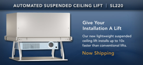 le professionnel des solutions de montage, qui a d’ailleurs été récompensé récemment lors de l’ISE 2011 à Amsterdam, pour la « meilleure solution de montage » grâce au SL220 Automated Projector Lift: