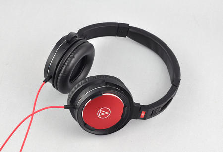 Le WS55 reprend le design de son prédécesseur, à quelques détails près. La coque est moins bombée que sur le WS50, même plutôt renfoncée. Le matériau plastique (salissant) utilisé sur le WS50 est ici remplacé par une plaque d’aluminium, réduisant les vibrations. En plus, l’aspect satiné granulé évite les traces de doigt… Enfin Audio-Technica propose maintenant cette version rouge, avec rappel sur le câble. La finition apparaît sérieuse mais le choix du plastique pour les branches de l’arceau reste peu gratifiant.