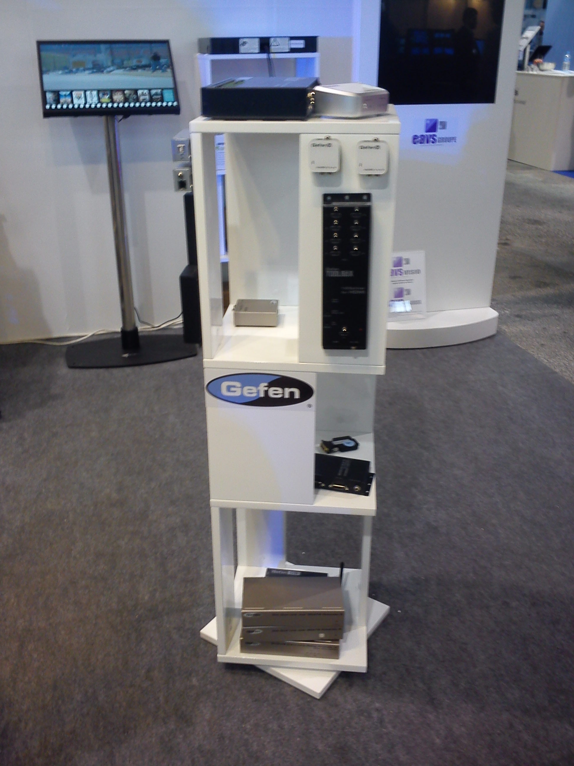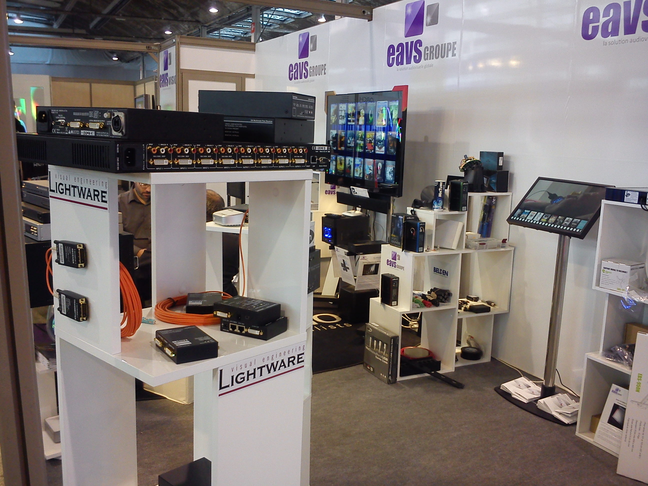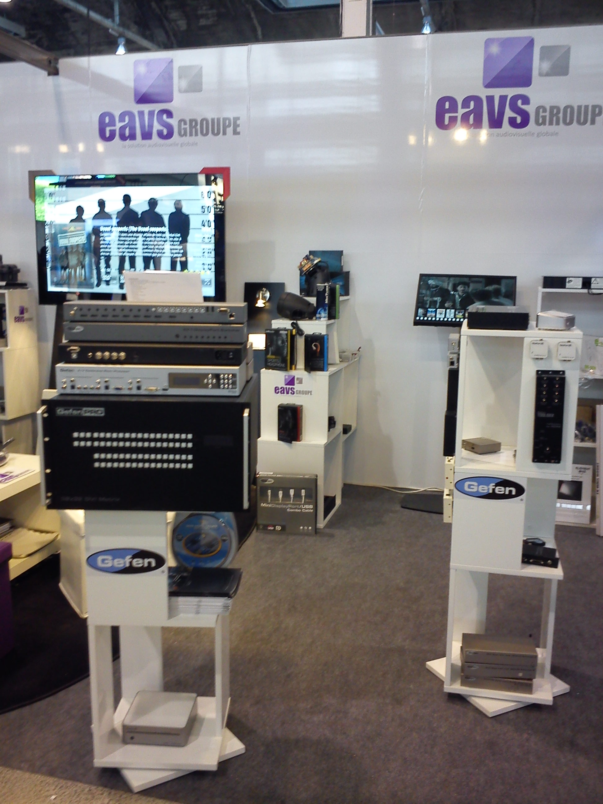 Sur le stand EAVS, la présentation de nos produits (notamment GEFEN et LIGHTWARE) sur plots rotatifs a particulièrement attirée l’attention : visibilité à 360° des produits, la possibilité de toucher les produits voire de les tester a particulièrement retenu nos visiteurs.