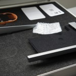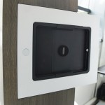 Element One montrait en détail la qualité du mécanisme de son dernier écran motorisé FOLD!. Les touches intégrées au cadre plat permettent de gérer l’ouverture/fermeture. Ce cadre est complété par un boîtier de table Socket-X du même matériaux pour une finition parfaite. Ce boîtier accueille prises de courant, HDMI et USB reliées à l’écran.