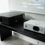 Christie avait apporté un 4K10-HS, un vidéoprojecteur mono DLP à roue quatre segments. Il délivre 10.000 lumens, en résolution 4K comme son nom l’indique. La source de lumière est un double laser phosphore bleu et rouge. Cet appareil livré est disponible avec une large gamme d’objectifs en option pour s’adapter à vos besoins.