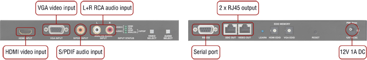 Chaque port en entrée dispose d’un EDID manager individuel, d’un convertisseur A/D mais aussi d’un switch vidéo analogique/numérique. Aucune perte de délai quand signal analogique est converti en numérique. Chaque port contient une fonction auto synchro mais les paramètres de l’image peuvent être aussi affinés manuellement.